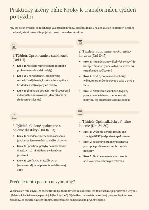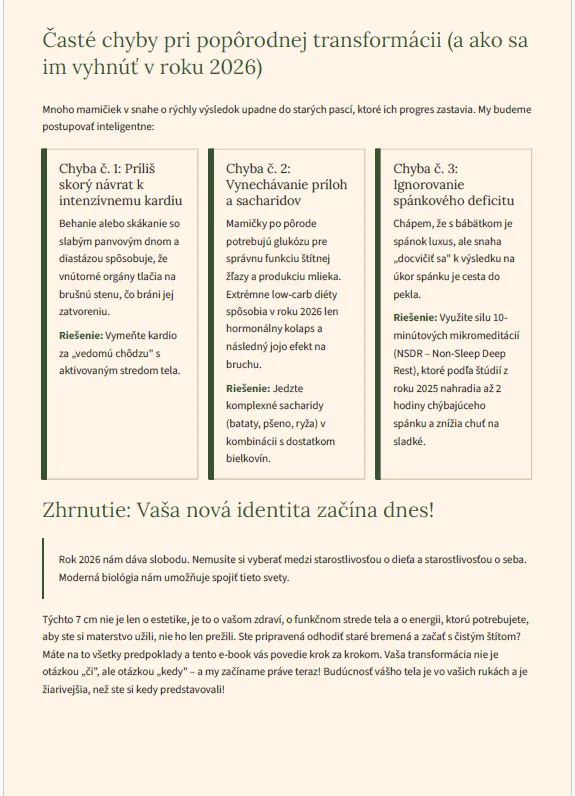 Stála som v kúpeľni, dvere zamknuté na dve západky. Vonku plakal môj syn, ale ja som na pár sekúnd potrebovala byť sama. Dívala som sa na svoje brucho – tú mäkkú, vypuklú hmotu, ktorá mi pripomínala všetko, čo som na sebe stratila. Nešlo o tie kilá navyše. Išlo o ten pocit, že moje telo ma zradilo. Skúšala som všetko. Cvičila som brušáky, kým mi nepukalo v krížoch, ale brucho sa len viac vyduvalo. Skúšala som hladovať, ale skončilo to len trasúcimi sa rukami a stratou mlieka. Cítila som sa ako cudzinec vo vlastnej koži. Moja šatníková skriňa bola plná šiat, ktoré som milovala, ale jediné, čo som nosila, boli tie najväčšie manželove tričká, aby som zakryla ‚to‘ v strede môjho tela.